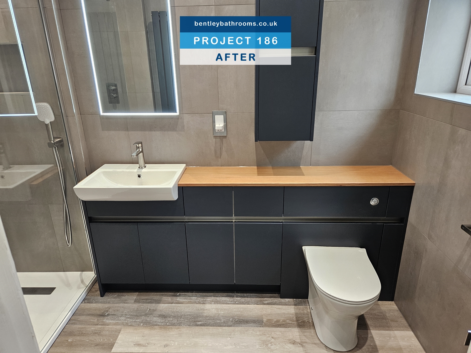 Full family shower-room renovation. including……, and all associated joinery, plumbing and electrics.